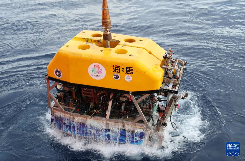 “海洋地質(zhì)二號”科考船搭載“海馬”號深海遙控潛水器在南海北部進行“源火”采集(9月18日攝)。