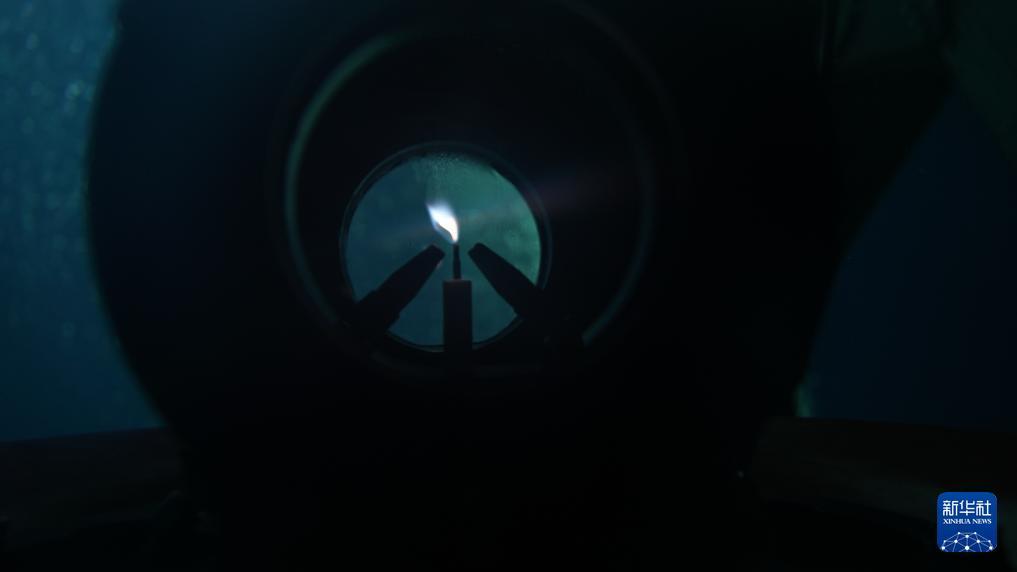 采火裝置在海底成功引燃“源火”(9月18日攝)。