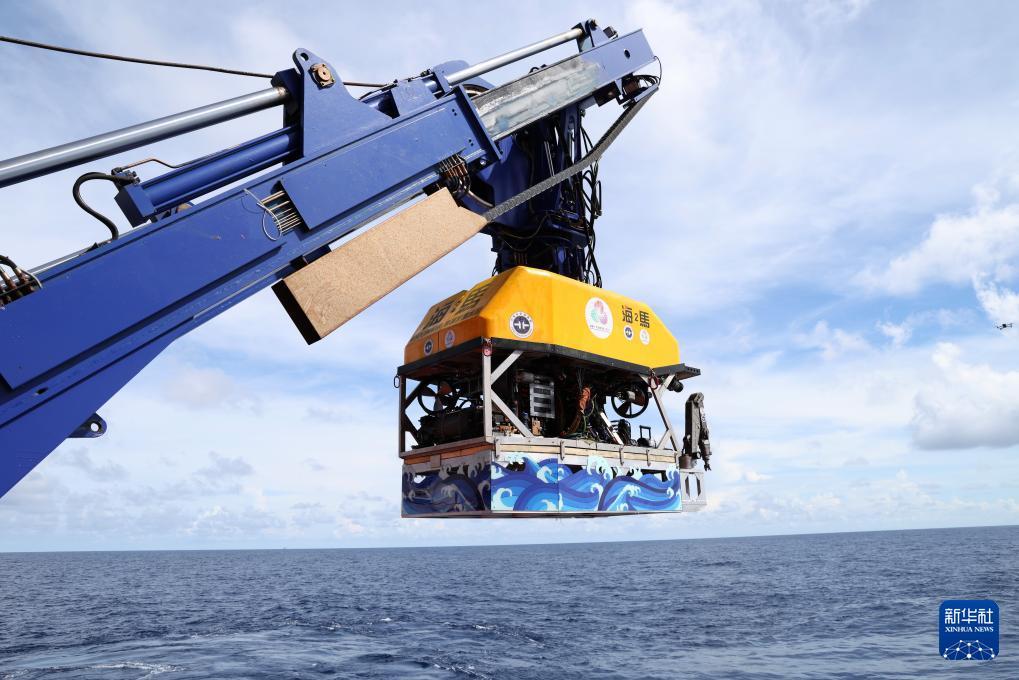 采集“源火”后,“海馬”號深海遙控潛水器從海底返回,浮出水面(9月18日攝)。
