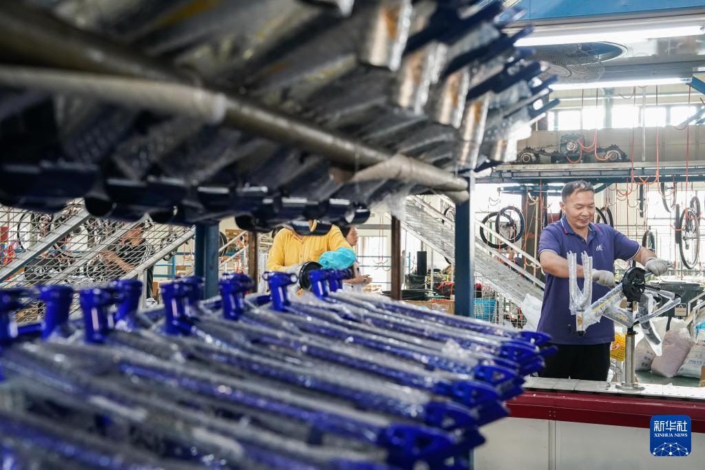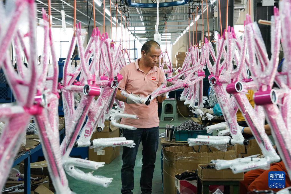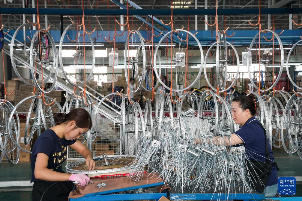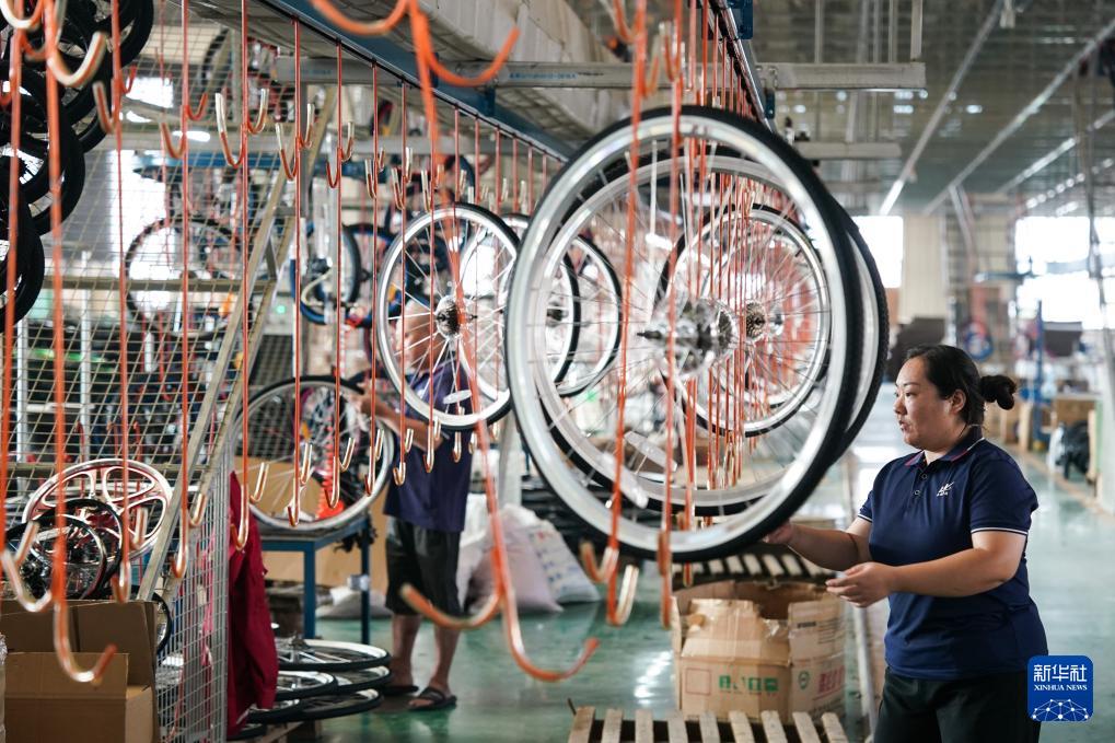 10月10日,工人在五河縣一家自行車生產(chǎn)企業(yè)內(nèi)工作。