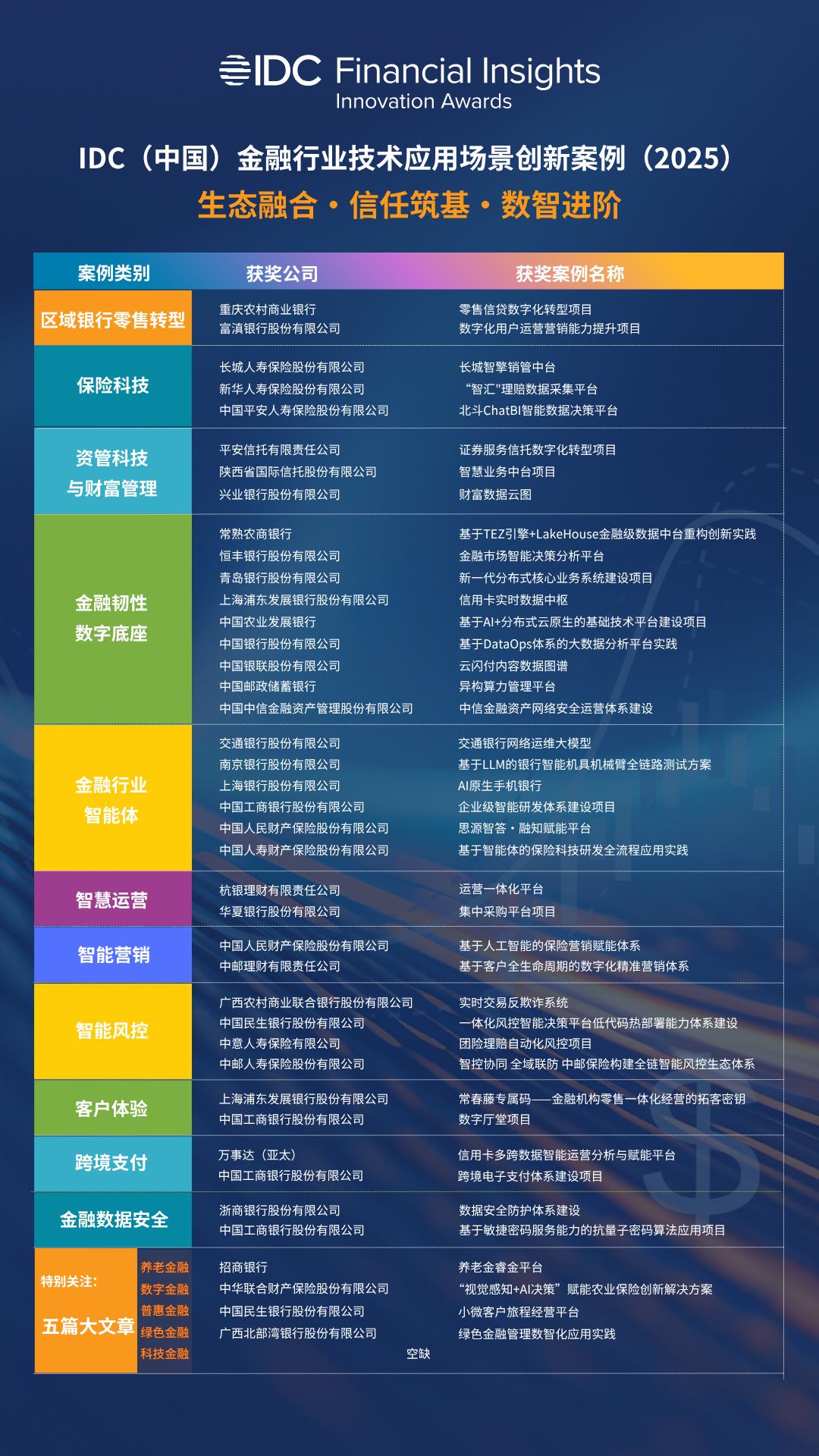 在既有案例評選的基礎(chǔ)上,今年繼續(xù)設(shè)立“卓越獎”,以表彰金融機(jī)構(gòu)在提交案例中展現(xiàn)的創(chuàng)新性、多樣性、實踐價值及行業(yè)示范作用。該獎項旨在促進(jìn)創(chuàng)新實踐共享,推動行業(yè)高質(zhì)量發(fā)展,助力金融機(jī)構(gòu)構(gòu)建差異化競爭優(yōu)勢。