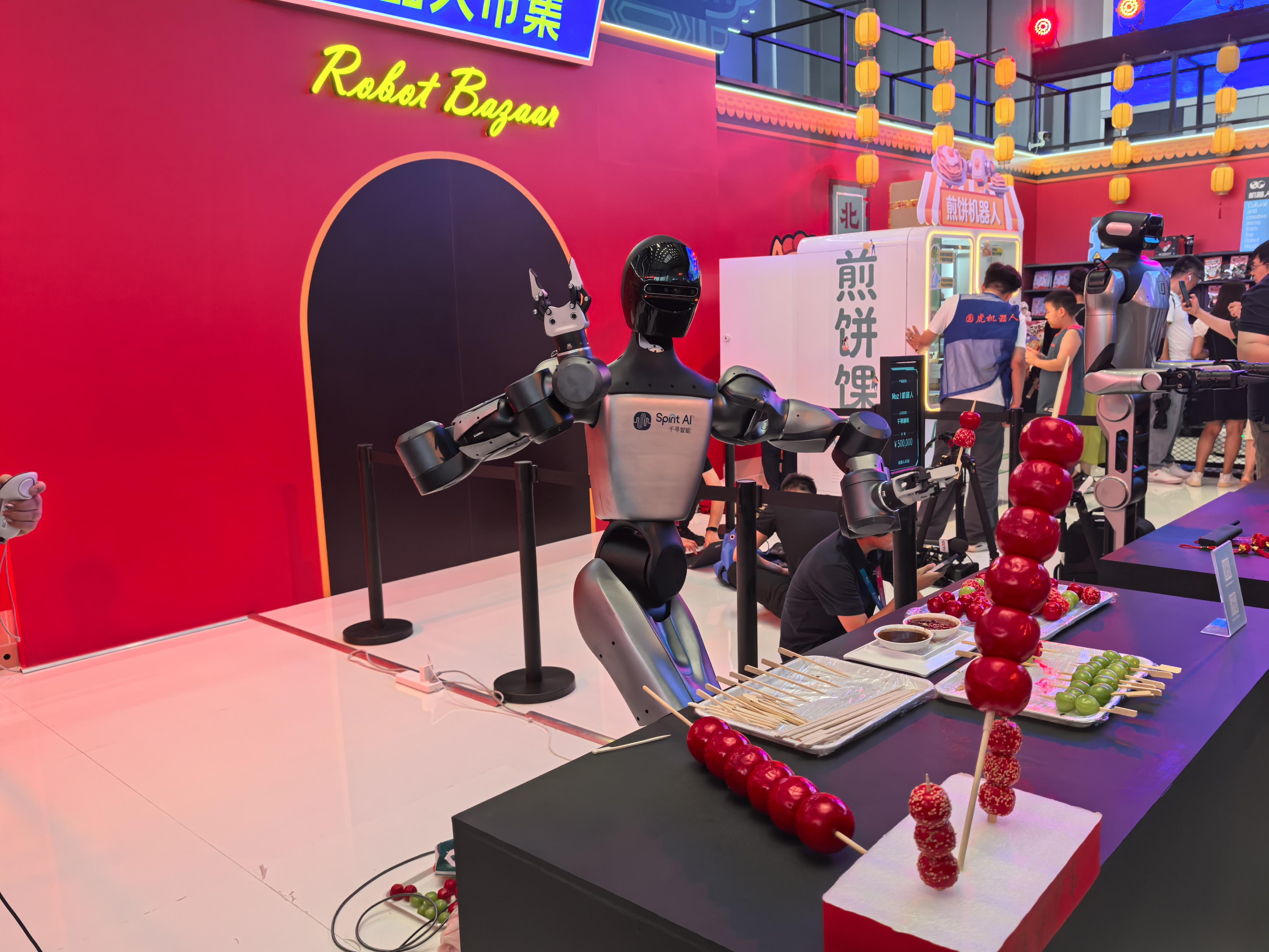 走進(jìn)機(jī)器人大會(huì)會(huì)客廳,星海圖R1 Pro機(jī)器人正在“賣”機(jī)器人,仿人機(jī)器人“小柒”熱情地和人打招呼,可樂(lè)機(jī)器人、飲料機(jī)器人、薯?xiàng)l機(jī)器人等正在制作“賽博美食”,會(huì)射箭、下棋、串山楂的各種機(jī)器人引來(lái)人們圍觀互動(dòng),全球首個(gè)人形機(jī)器人馬拉松賽事冠軍“天工 Ultra”和多位參賽機(jī)器人選手集結(jié)……“機(jī)器人4S店”“機(jī)器人焰究所”“機(jī)器人市集”“兩會(huì)一賽”四大板塊的20家企業(yè)、26個(gè)機(jī)器人展品讓人目不暇接?!皺C(jī)器人4S店”“機(jī)器人焰究所”分別是北京亦莊所打造的全球首個(gè)具身智能機(jī)器人4S店、機(jī)器人主題餐廳“機(jī)器人焰究所”的微縮場(chǎng)景,具身智能機(jī)器人4S店是提供集機(jī)器人銷售(Sale)、零配件供應(yīng)(Sparepart)、售后服務(wù)(Service)、信息反饋(Survey)于一體,同時(shí)融合定制化開(kāi)發(fā)、金融服務(wù)及機(jī)器人租賃等業(yè)務(wù)模式的端到端綜合解決方案提供商,為機(jī)器人企業(yè)提供從研發(fā)到市場(chǎng)的轉(zhuǎn)化通道?!皟蓵?huì)一賽”則集中展示世界機(jī)器人大會(huì)、世界人形機(jī)器人運(yùn)動(dòng)會(huì)、北京亦莊人形機(jī)器人半程馬拉松賽的創(chuàng)新成果。其中,世界機(jī)器人大會(huì)和人形機(jī)器人馬拉松賽事都在北京亦莊舉行,北京亦莊通過(guò)打造機(jī)器人“大會(huì)+賽事+系列活動(dòng)”矩陣,構(gòu)建“高端、高頻、高效”的機(jī)器人產(chǎn)業(yè)交流高地。