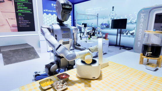在制作煲仔飯時,DOBOT AtomⅡ左手拿起油壺倒油的角度與右手按下電飯煲開關(guān)鍵的時機完美同步,還能根據(jù)烹飪進度自主決策加入不同食材順序。