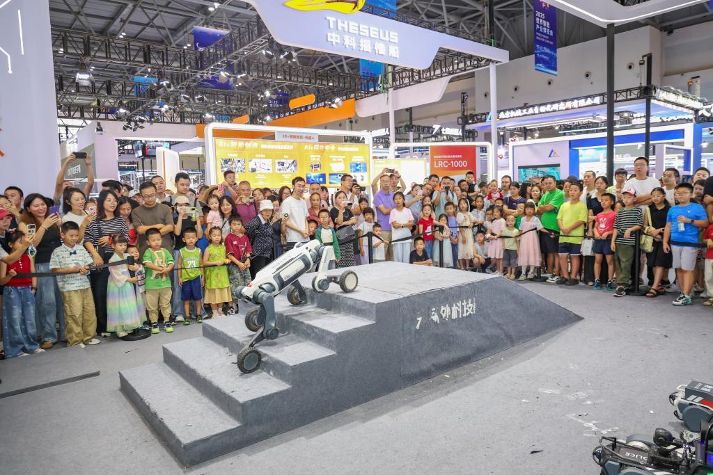 2025年9月7日,在重慶舉行的2025世界智能產(chǎn)業(yè)博覽會(huì)上,一款機(jī)器狗在展示技能。新華社記者黃偉攝