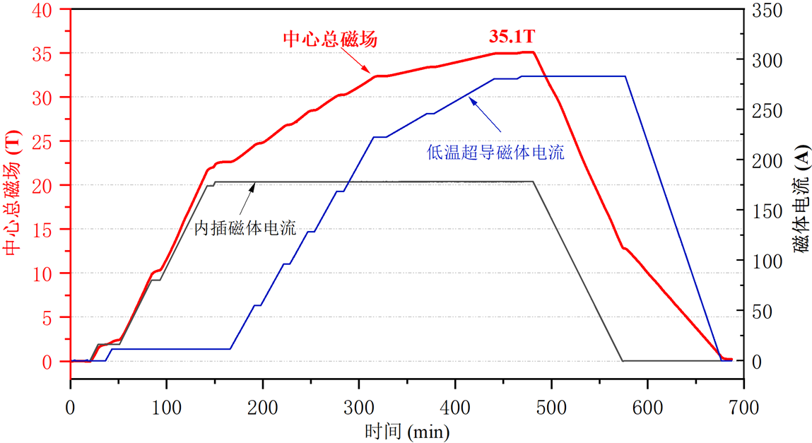“該磁體勵(lì)磁至35.1特斯拉,穩(wěn)定運(yùn)行30分鐘后安全退磁,充分驗(yàn)證了技術(shù)方案的可靠性,為在全超導(dǎo)磁體35.1特斯拉條件下開(kāi)展各類(lèi)樣品實(shí)驗(yàn)提供了強(qiáng)有力平臺(tái)?!眲⒎秸f(shuō)。