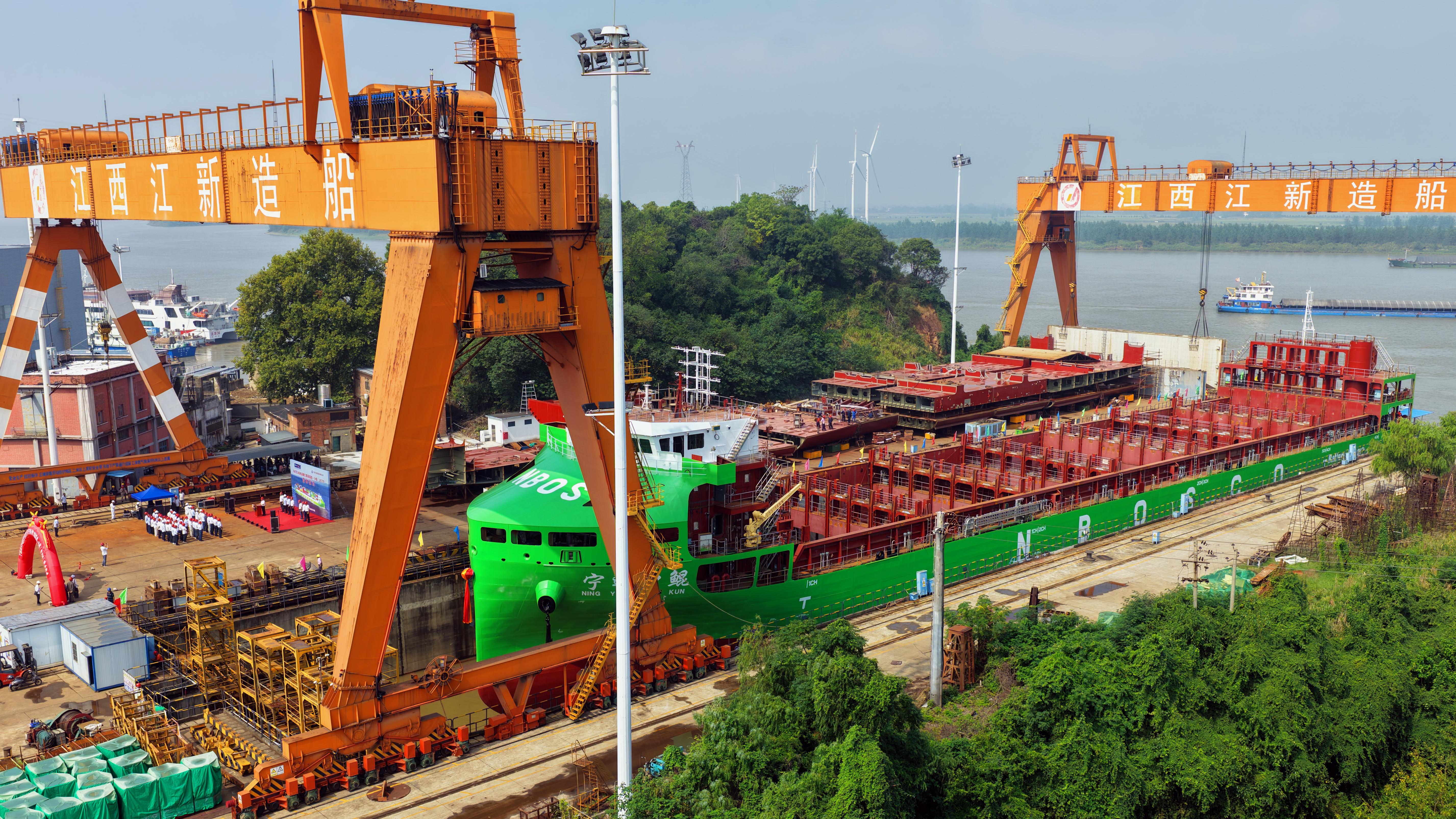 9月29日,我國航運(yùn)業(yè)迎來歷史性突破。由江西江新造船有限公司為寧波遠(yuǎn)洋運(yùn)輸股份有限公司建造的“740TEU純電動(dòng)敞口集裝箱船”在江西湖口成功下水。據(jù)介紹,該船是全球最大、國內(nèi)首制萬噸級(jí)純電動(dòng)智能海船,其下水標(biāo)志著我國沿海集裝箱運(yùn)輸正式邁入零排放、純電動(dòng)時(shí)代。