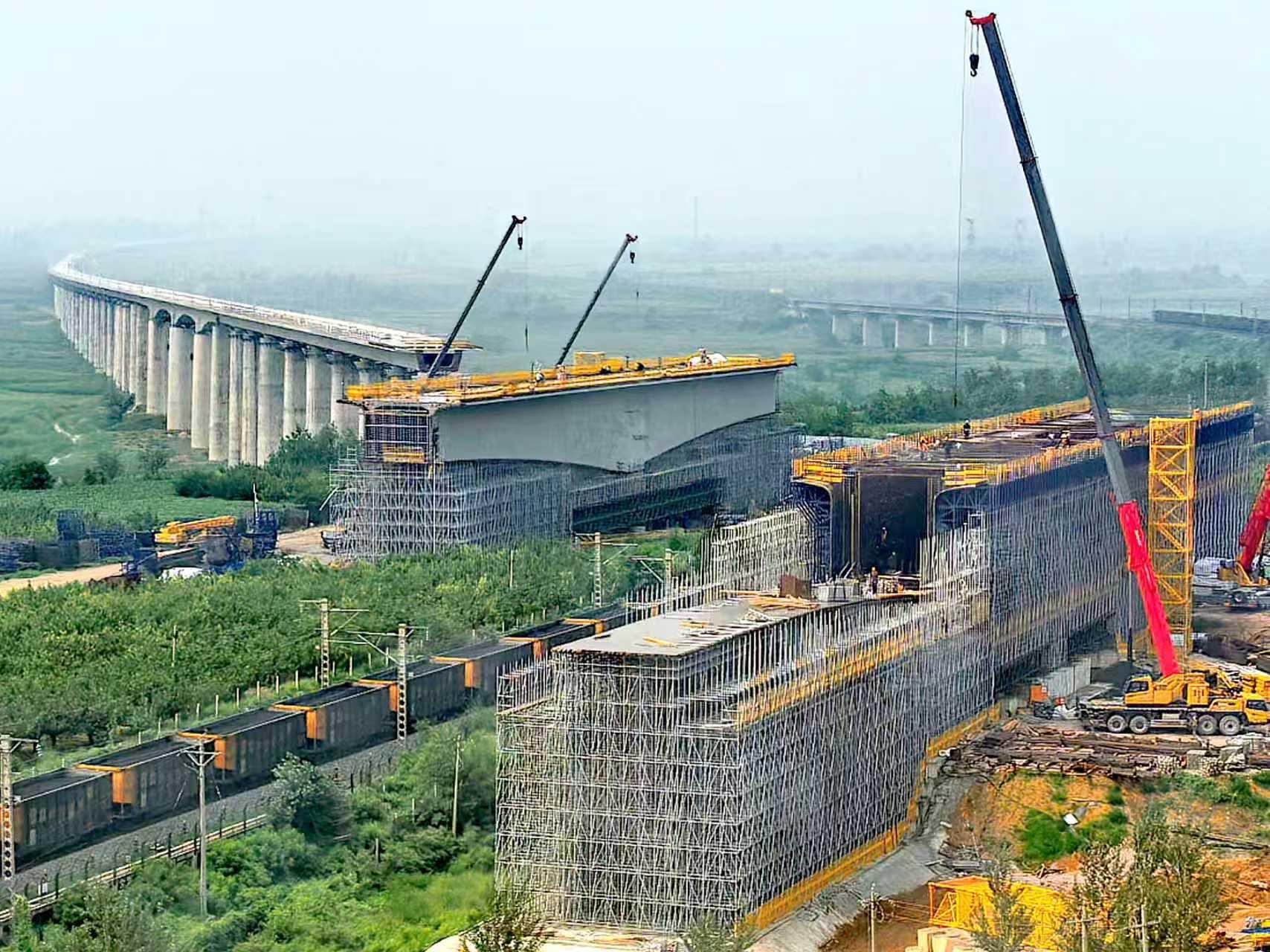 施工面臨的外部環(huán)境挑戰(zhàn)同樣嚴苛。轉(zhuǎn)體橋跨越的朔黃鐵路是國家重要能源運輸通道,平均6—8分鐘就有一列重載列車通行,且鄰近既有線施工安全管控標(biāo)準(zhǔn)極高,嚴禁施工對鐵路正常運營產(chǎn)生絲毫影響?!皞鹘y(tǒng)跨線施工方式無法滿足要求,必須采取‘不干擾運營’的施工路徑?!敝需F三局項目部負責(zé)人余海鵬表示。