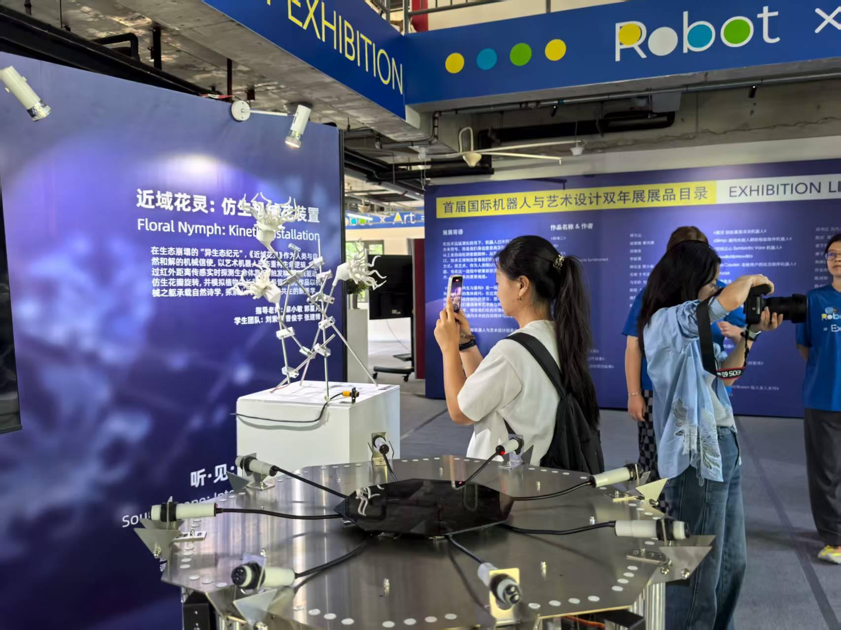 集群機器人講述猴子撈月,手勢交互觸發(fā)影像萬花筒……8月1-31日,首屆國際機器人與藝術(shù)設(shè)計雙年展(以下簡稱“雙年展”)展覽在北京市機器人產(chǎn)業(yè)園(亦莊)舉辦。