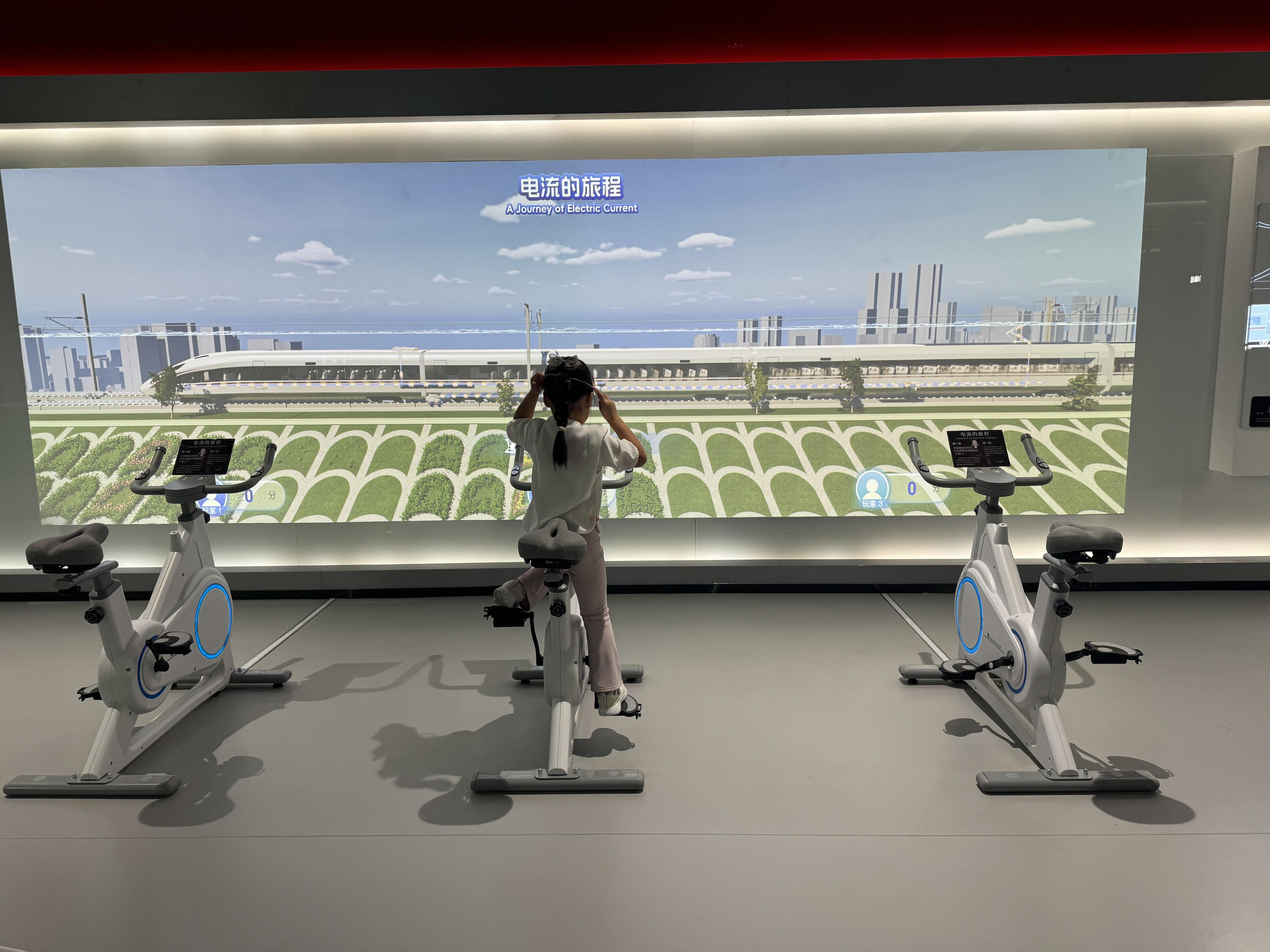 圖片3說明:游客在科技館內(nèi)體驗高鐵“電流的旅程”項目