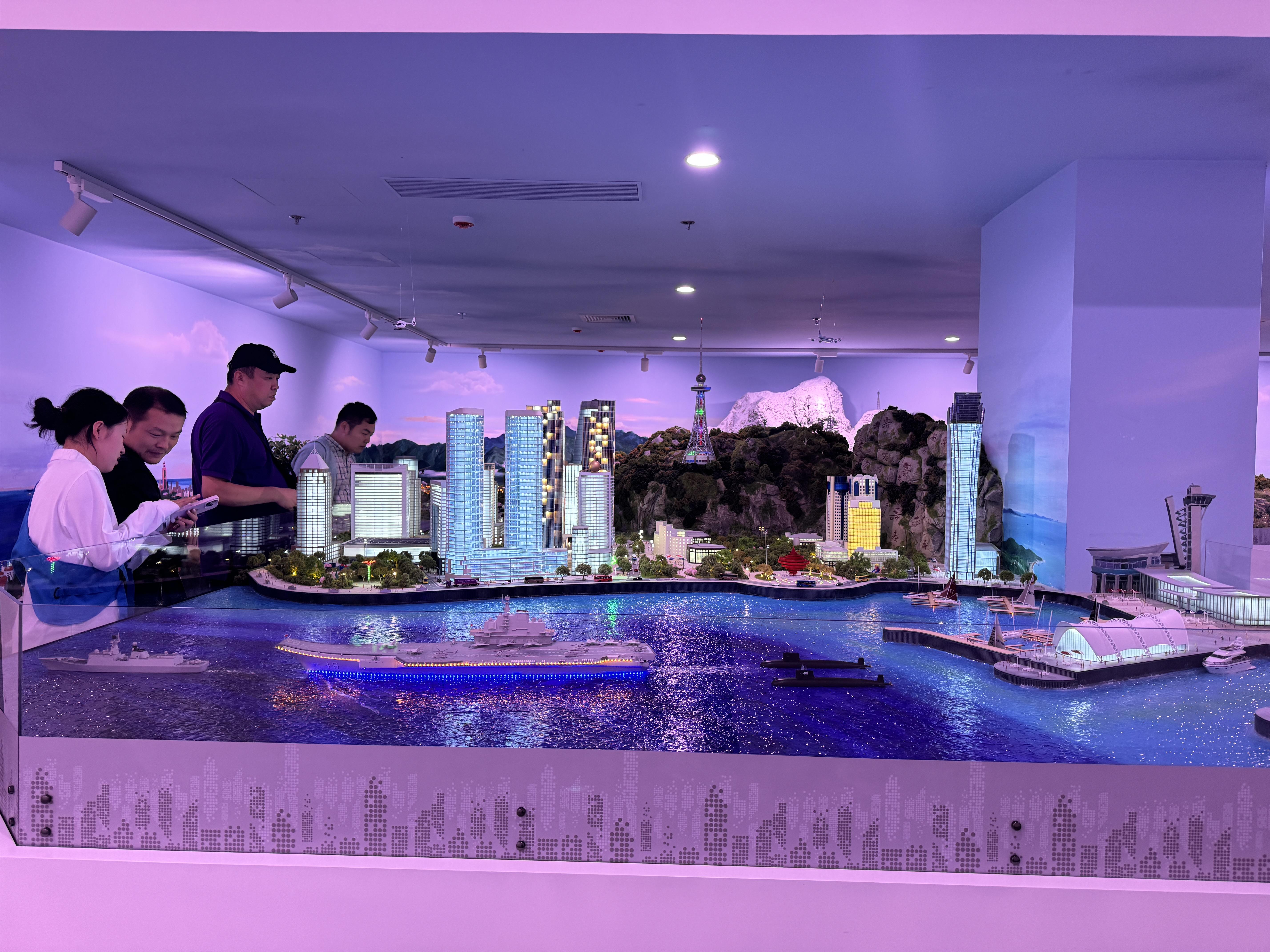 圖片2說明:游客在科技館館內(nèi)觀賞“連接世界的旅程”沙盤