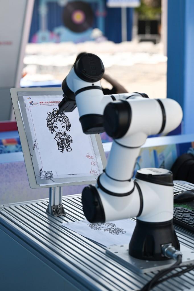 本屆戲曲周特設(shè)“戲韻智界”專區(qū),通過機器人、VR/MR、AI等前沿技術(shù)打破傳統(tǒng)觀演邊界。月季園內(nèi),“孫悟空”“牛魔王”高動態(tài)機甲與游客互動表演,逼真造型與靈活動作引發(fā)陣陣歡呼;銀杏大道上的AI復(fù)古報紙機,3秒即可生成印有個人形象的戲曲主題報紙,成為游客打卡熱門;身著戲服的機器狗“哮天犬”則憑借萌趣模樣,成為孩子們的最愛。此外,活動還聯(lián)合QQ音樂、酷狗等平臺推出“國粹典藏”名段專輯,收錄15位梅花獎得主在內(nèi)的30位名家共88首經(jīng)典唱段,供公眾免費收聽,讓戲曲之聲借助數(shù)字平臺觸達更廣泛的人群。