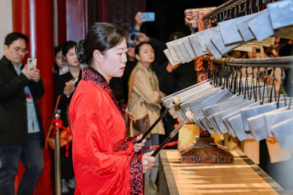 白天的定時(shí)免費(fèi)講解服務(wù)采用智能語音導(dǎo)覽設(shè)備,觀眾可實(shí)時(shí)收聽古鐘歷史、鑄造工藝的詳細(xì)介紹,文物故事觸手可及;晚間活動(dòng)更具科技亮點(diǎn),古風(fēng)NPC巡游搭配移動(dòng)燈光跟隨系統(tǒng),營(yíng)造動(dòng)態(tài)穿越場(chǎng)景;編鐘樂舞歌舞劇通過專業(yè)音響與舞臺(tái)燈光調(diào)控,精準(zhǔn)傳遞古代宮廷藝術(shù)的莊重與優(yōu)美;“永樂大鐘鳴響祈?!杯h(huán)節(jié)則通過聲效放大技術(shù),讓深沉鐘聲回蕩全場(chǎng),強(qiáng)化沉浸式祈愿體驗(yàn)。