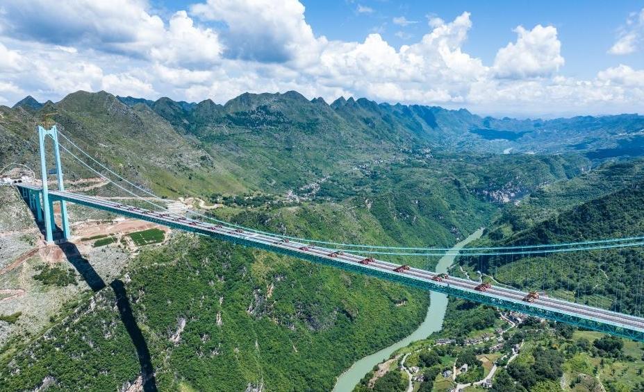 花江峽谷大橋于2022年1月開工建設(shè),是貴州六枝至安龍高速公路的控制性工程,全長2890米,主橋跨徑1420米,橋面到水面高度625米?;ń瓖{谷大橋建成后,主橋跨徑將居山區(qū)橋梁跨徑世界第一、橋梁高度將居世界第一。
