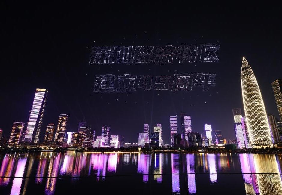 8月26日晚,深圳經(jīng)濟(jì)特區(qū)建立45周年無人機(jī)燈光秀表演在深圳市民廣場、深圳人才公園雙主場同時(shí)舉行,為市民游客獻(xiàn)上一場科技與藝術(shù)共舞的視覺盛宴。