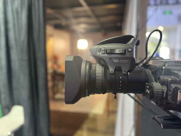 走進(jìn)富士膠片(中國)展臺(tái),一個(gè)融合東方美學(xué)與異域風(fēng)情的“古風(fēng)書房”影棚場景引人注目,暗調(diào)氛圍中層次分明的光影營造出濃郁的電影質(zhì)感,讓人仿佛置身影視創(chuàng)作現(xiàn)場。展臺(tái)內(nèi),四組精心設(shè)計(jì)的機(jī)位以不同高度、角度排布,模擬影視創(chuàng)作中的多視角需求——這里不僅有Duvo系列三款PL卡口電影變焦鏡頭“HZK25-1000”“HZK24-300”“HZK14-100”的實(shí)景演示,更設(shè)置了由4K廣播電視變焦鏡頭“FUJINON LA30x7.8BRM-XB2”(以下簡稱“LA30”)組成的移動(dòng)拍攝位,讓參觀者能夠近距離操作體驗(yàn),直觀感受從廣角到長焦、從固定機(jī)位到動(dòng)態(tài)跟拍的豐富創(chuàng)作可能。