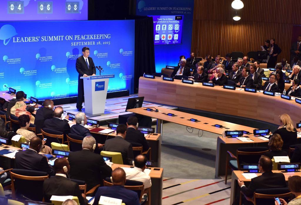 2015年9月,習(xí)近平總書記在紐約聯(lián)合國(guó)總部出席聯(lián)合國(guó)維和峰會(huì)并發(fā)表講話。新華社記者 李濤 攝