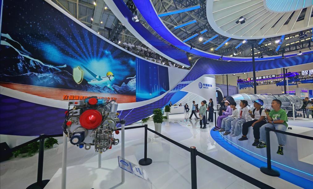 中國航空發(fā)動(dòng)機(jī)集團(tuán)展臺(tái)上,一群少年認(rèn)真觀看著科普動(dòng)畫?!翱赐陝?dòng)畫,我了解到,目前能獨(dú)立研制出先進(jìn)航空發(fā)動(dòng)機(jī)的國家只有5個(gè),而我國就是其中之一!長大后我也想成為研制發(fā)動(dòng)機(jī)的科學(xué)家。”