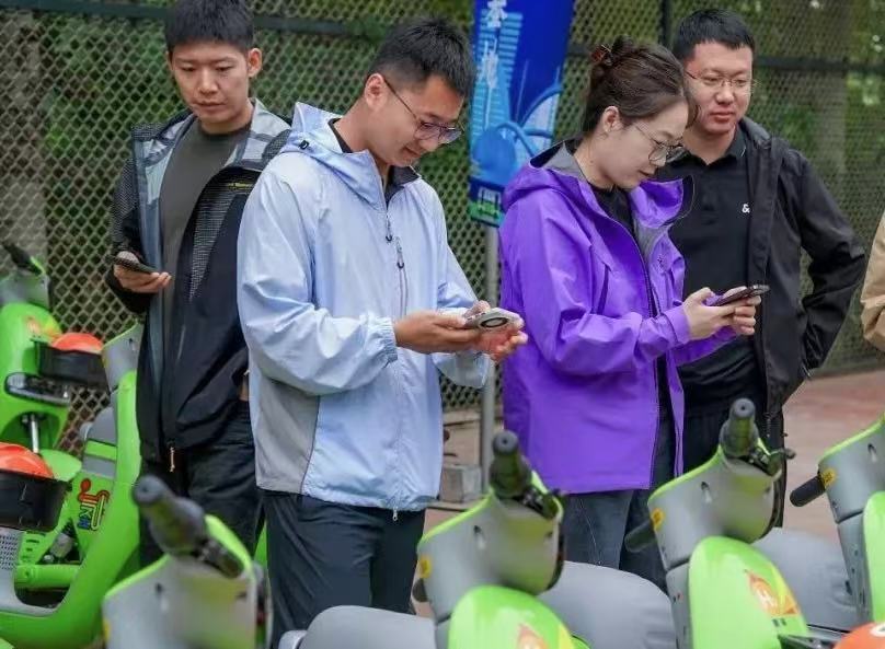 在內(nèi)蒙古自治區(qū)鄂爾多斯市康巴什街頭,市民掃碼體驗(yàn)“氫個(gè)蛋”共享單車。(受訪者供圖)