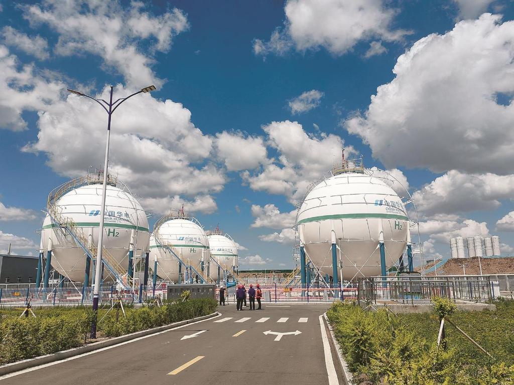這是內(nèi)蒙古華電氫能科技有限公司的儲(chǔ)氫罐區(qū)。(受訪者供圖)