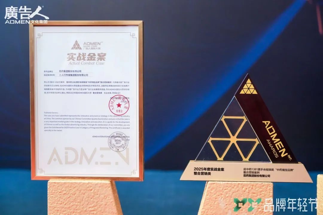 近日,以“實效創(chuàng)新 與智共生”為主題的2025ADMEN國際大賞在北京廣播大廈舉行。昆明高新區(qū)企業(yè)昆藥集團股份有限公司(以下簡稱“昆藥集團”)憑借《昆中藥1381攜手央視鑄就“中藥瑰寶品牌”整合營銷案例》,從萬余件參評作品中脫穎而出,榮膺“整合營銷類 實戰(zhàn)金案”殊榮,在這場聚集了500余家行業(yè)頭部機構、媒體平臺及品牌主的年度盛典中,充分彰顯昆藥集團及昆中藥1381老字號藥企在AI時代的創(chuàng)新傳播實力。