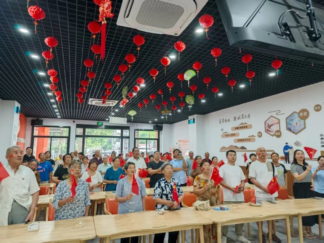 當(dāng)莊嚴(yán)的國歌聲在服務(wù)站活動室內(nèi)響起,全體在場居民自發(fā)肅立,搖起手中的紅旗,齊聲高唱國歌,目光緊緊鎖定屏幕上天安門廣場的盛大場面。隨著受閱部隊一個個方陣邁著鏗鏘有力、整齊劃一的步伐走過,新型武器裝備依次亮相,天空梯隊呼嘯而過,活動現(xiàn)場不時爆發(fā)出陣陣熱烈的掌聲和由衷的贊嘆聲。