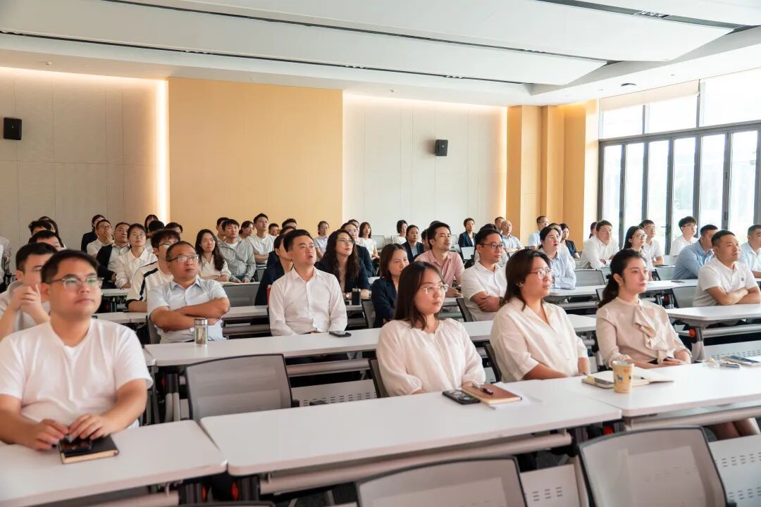 當日上午,距離直播開始還有一段時間,觀看現(xiàn)場早已氣氛熱烈。員工們提前來到場地,整齊就座,每個人的臉上都寫滿了崇敬與期待,現(xiàn)場莊重而肅穆。當激昂雄壯的《義勇軍進行曲》響起,鮮艷的五星紅旗緩緩升起,全體員工自發(fā)地齊聲高唱國歌,歌聲飽含著對祖國的深情熱愛與崇高敬意,回蕩在整個觀看現(xiàn)場。