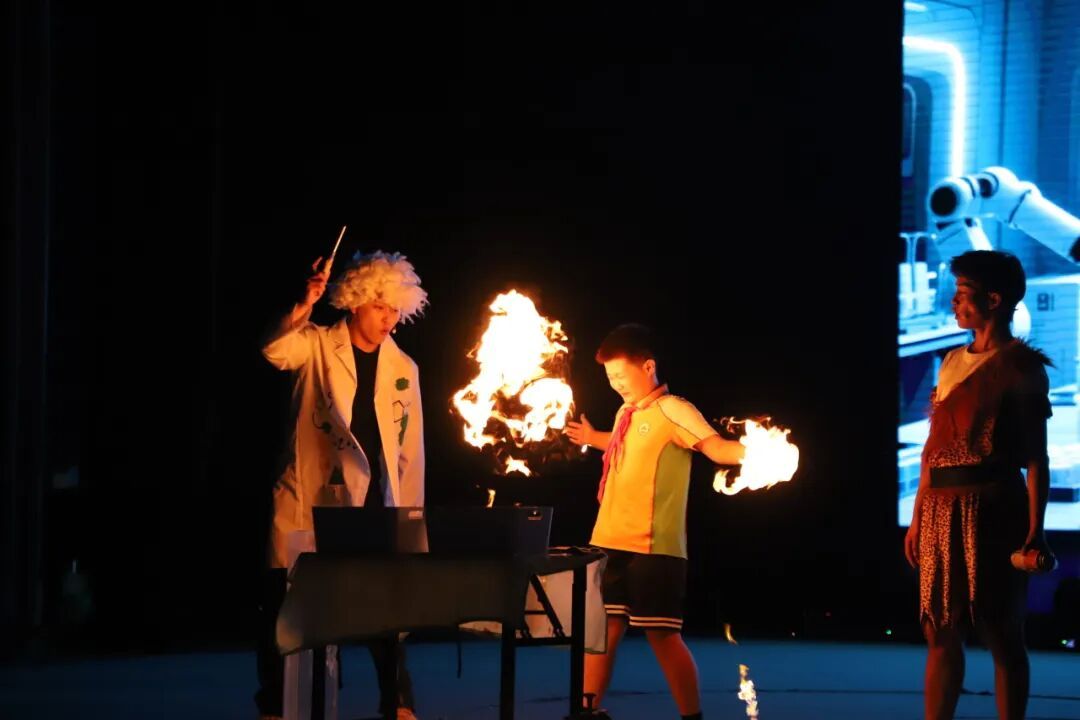 活動現(xiàn)場,山東省科技館巡演團(tuán)隊為學(xué)生們帶來了科普劇《森林里的光》和科學(xué)實(shí)驗劇《冬日焰火》。此次演出采用科學(xué)實(shí)驗與演出劇情相結(jié)合的方式,在劇情中加入了相關(guān)科學(xué)小實(shí)驗,讓學(xué)生們更加直觀地了解相關(guān)科學(xué)原理,學(xué)習(xí)相應(yīng)的科學(xué)知識。演出中,還邀請了部分師生代表上臺體驗了科學(xué)小實(shí)驗,精彩的演出和奇特的實(shí)驗贏得了學(xué)生們的陣陣驚呼和掌聲。