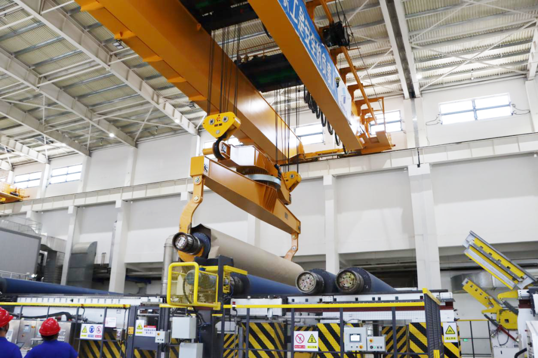 走進廣東山鷹的生產(chǎn)車間,PM52、PM53兩條行業(yè)先進生產(chǎn)線正高速運轉(zhuǎn),每分鐘1200米的運行車速、8.6米的凈紙幅寬,不僅讓單位畝產(chǎn)產(chǎn)能位居行業(yè)前列,更直觀展現(xiàn)著企業(yè)的硬核實力。