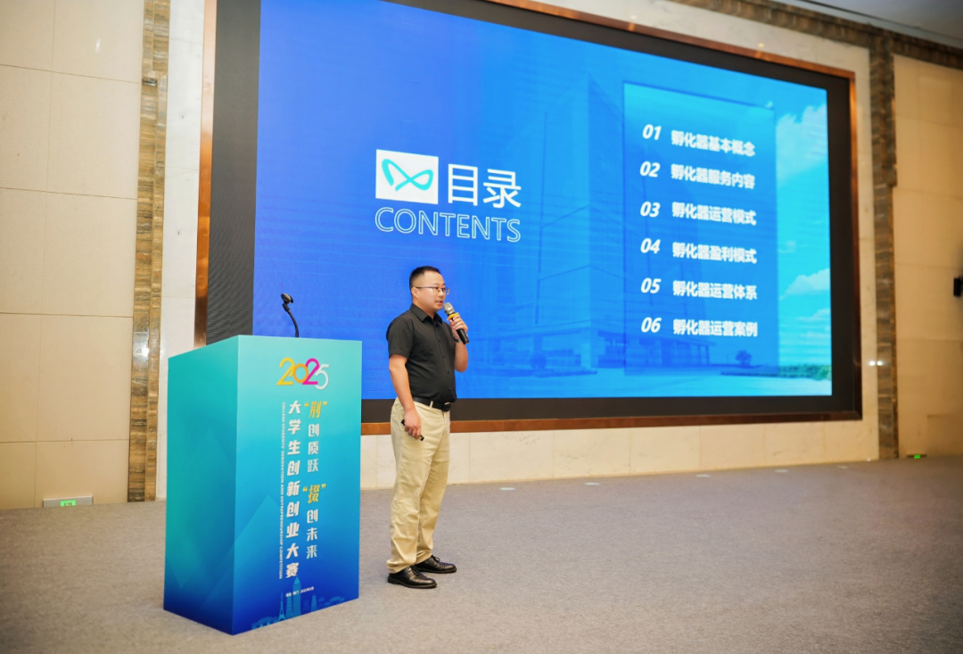 為更好地提升孵化創(chuàng)新能力,本次大賽特別設(shè)置了專家授課環(huán)節(jié)。恩施安貝森科技服務(wù)股份有限公司董事長(zhǎng)王海帶來(lái)《孵化器運(yùn)營(yíng)與管理》的分享,既有理論高度,也為后續(xù)孵化器培育企業(yè)、推進(jìn)申報(bào)工作提供了有力指導(dǎo)。