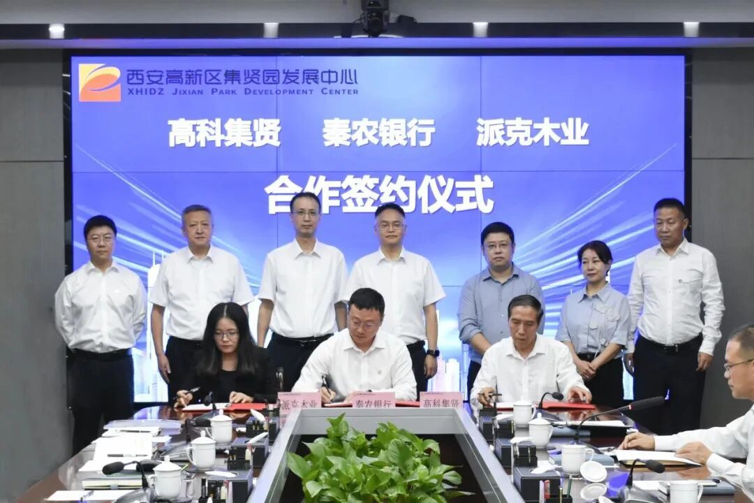 活動現(xiàn)場,秦農(nóng)銀行周至支行黨委書記、行長蘆宏亮與西安高新區(qū)集賢園黨委書記、發(fā)展中心主任梁煒華代表銀政雙方簽約戰(zhàn)略合作協(xié)議;秦農(nóng)銀行周至支行副行長焦曉峰與高科集賢公司副總經(jīng)理許松濤、陜西派克木業(yè)公司總經(jīng)理助理?xiàng)钛┭啻磴y企簽署合作協(xié)議。高科集賢公司總經(jīng)理郭偉代表企業(yè)進(jìn)行發(fā)言,表達(dá)金融支持下的發(fā)展信心和對深化合作的強(qiáng)烈期盼。