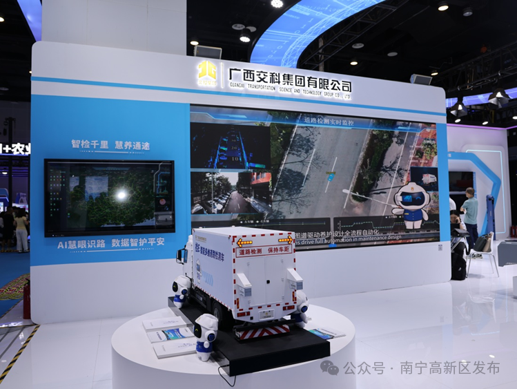 廣西交科集團(tuán)現(xiàn)場展出檢E-智能多維道路檢測車、交通行業(yè)大模型——“科寶”、大件運(yùn)輸智能體平臺等人工智能核心產(chǎn)品。其中,國內(nèi)首款“檢E-智能多維道路檢測車”在東盟博覽會亮相。