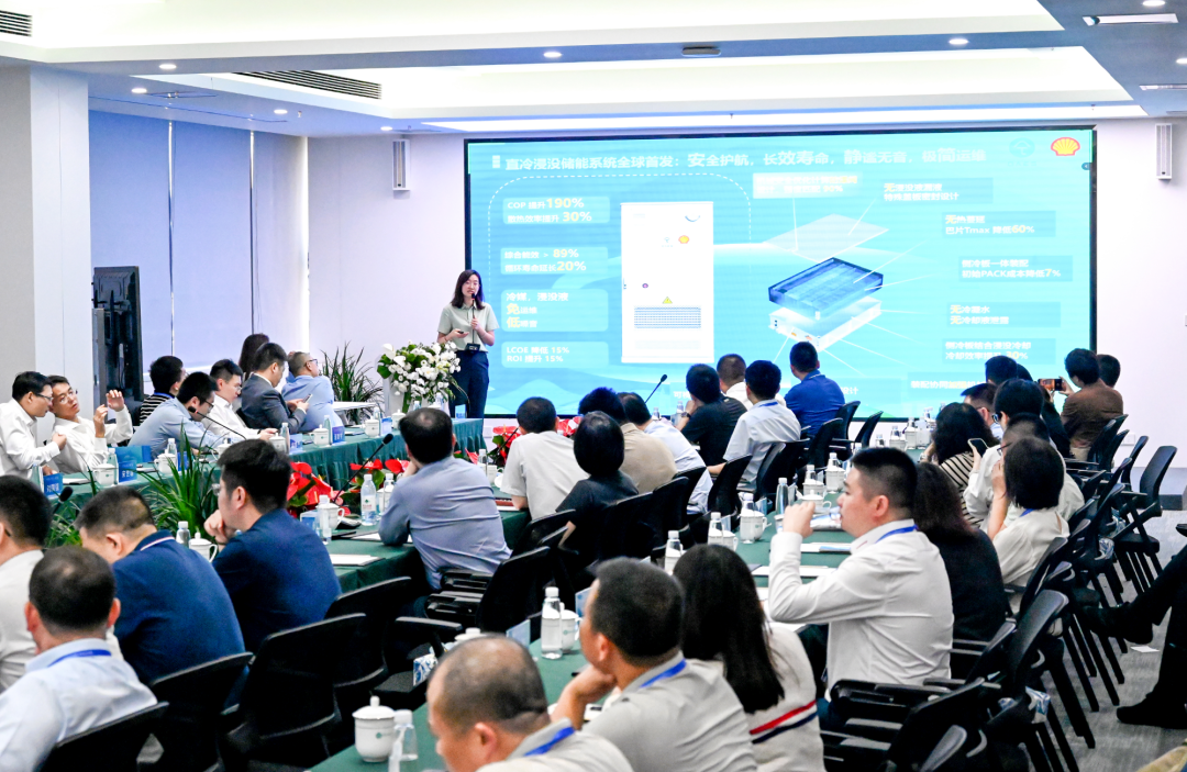 據(jù)了解,全球首款直冷浸沒儲能系統(tǒng),通過融合“浸沒安全”與“直冷高效”的雙重技術(shù)方案,將儲能系統(tǒng)輔助能耗降低60%、電池循環(huán)壽命提升30%、電池系統(tǒng)充放電量提升1%~2%,適用于綜合能源補給站、化工廠、辦公樓等各種需要高安全、高效率、長壽命儲能系統(tǒng)的場景,目前已和殼牌等全球知名企業(yè)進行合作簽約。