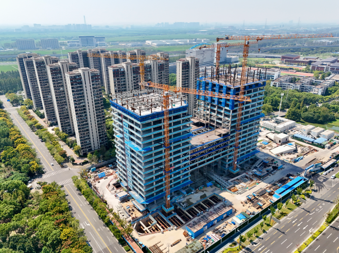 世紀(jì)大廈項目位于前進(jìn)路南側(cè)、體育場路西側(cè),總建筑面積13.7萬平方米,建筑高度138.8米,計劃于2027年竣工。項目緊鄰蘇州11號線昆山文化藝術(shù)中心站,建成后將成為前進(jìn)路沿線高端辦公新地標(biāo),集辦公、商業(yè)服務(wù)等功能于一體。項目主體結(jié)構(gòu)正在緊張施工中。