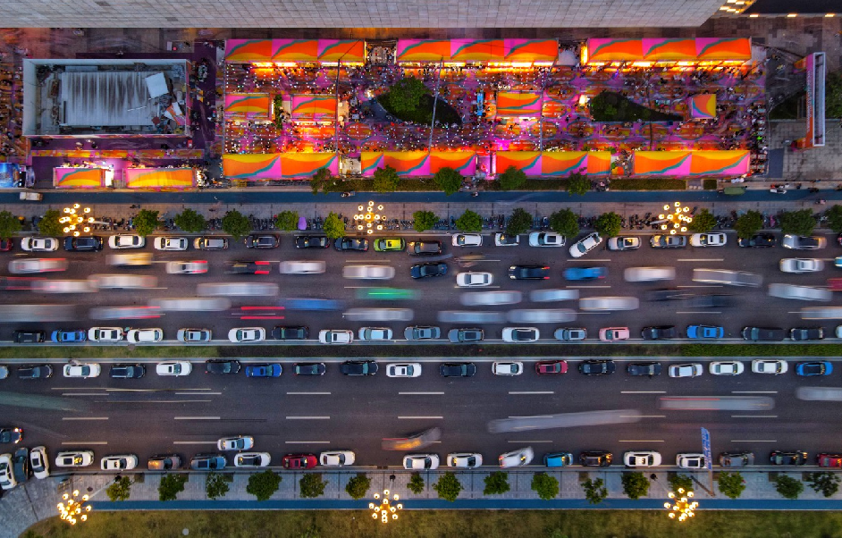 夜間經(jīng)濟同樣璀璨,科學(xué)城、知識城等核心商圈延長營業(yè)時間,策劃主題夜市、文化展演、燈光秀等活動,打造集美食、購物、娛樂、休閑于一體的夜消費場景?!皩毮苎菟囍行?至泰廣場商文旅體融合商圈”創(chuàng)新植入笙歌夜市、集裝箱市集等消費場景,大沙地商圈引入沉浸式劇本殺與深夜食堂,花廳坊依托古建氛圍舉辦非遺夜市與星空影院,為夜間消費注入文化靈魂。