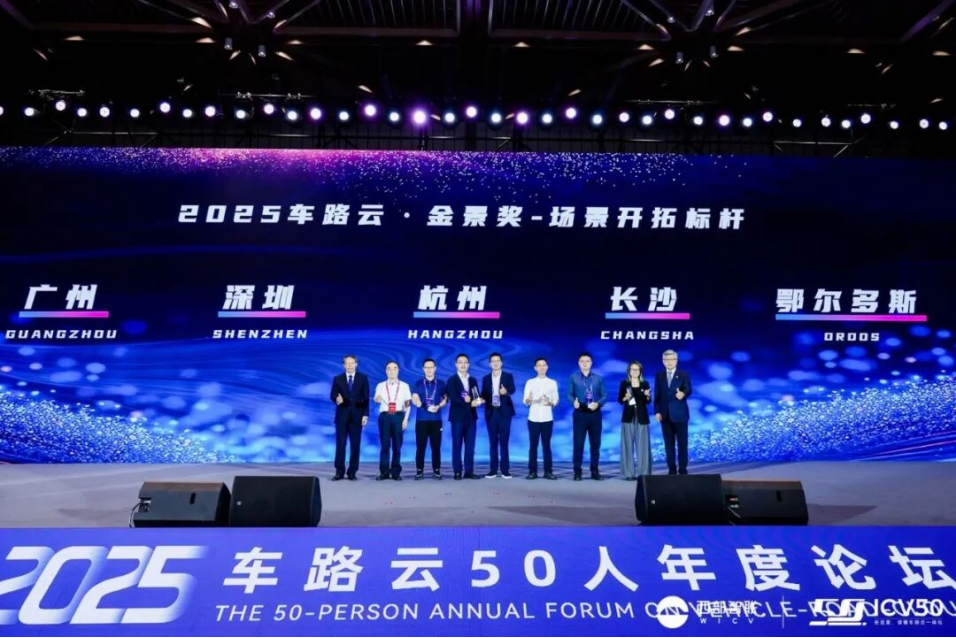 獲得“2025車路云·金景獎(jiǎng)”的城市有:廣州、深圳、杭州、長(zhǎng)沙、鄂爾多斯。