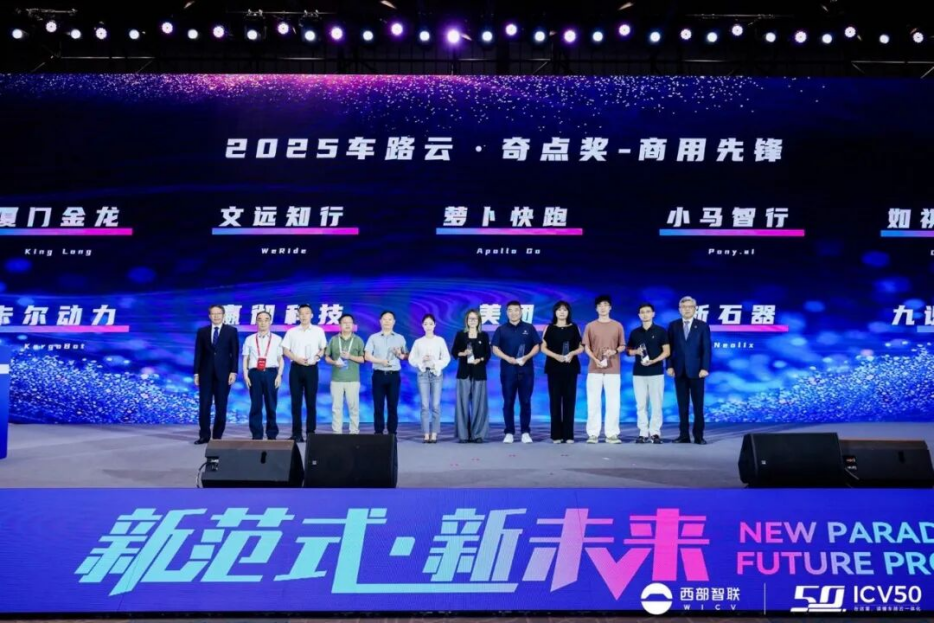 獲得“2025車路云·奇點(diǎn)獎(jiǎng)”的企業(yè)有:廈門金龍、文遠(yuǎn)知行、蘿卜快跑、小馬智行、如祺出行、卡爾動(dòng)力、嬴徹科技、美團(tuán)、新石器、九識(shí)智能。