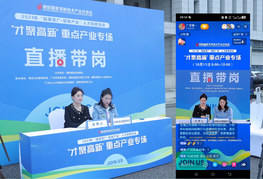 10月11日,由德陽高新區(qū)管委會(huì)主辦,成都市青白江區(qū)委組織部、廣漢市委組織部、德陽高新區(qū)黨群工作部、德陽高新區(qū)人才服務(wù)中心、廣漢市人力資源和社會(huì)保障局、德陽高新區(qū)總工會(huì)承辦的2025年“鏈接青廣 賦能產(chǎn)業(yè)”重點(diǎn)產(chǎn)業(yè)專場(chǎng)人才招聘活動(dòng)在德陽高新區(qū)管委會(huì)舉行。本次活動(dòng)精準(zhǔn)聚焦區(qū)域重點(diǎn)產(chǎn)業(yè)發(fā)展需求,成功搭建了廣漢市、成都市青白江區(qū)人才與企業(yè)的雙向?qū)訕蛄?,成效顯著。