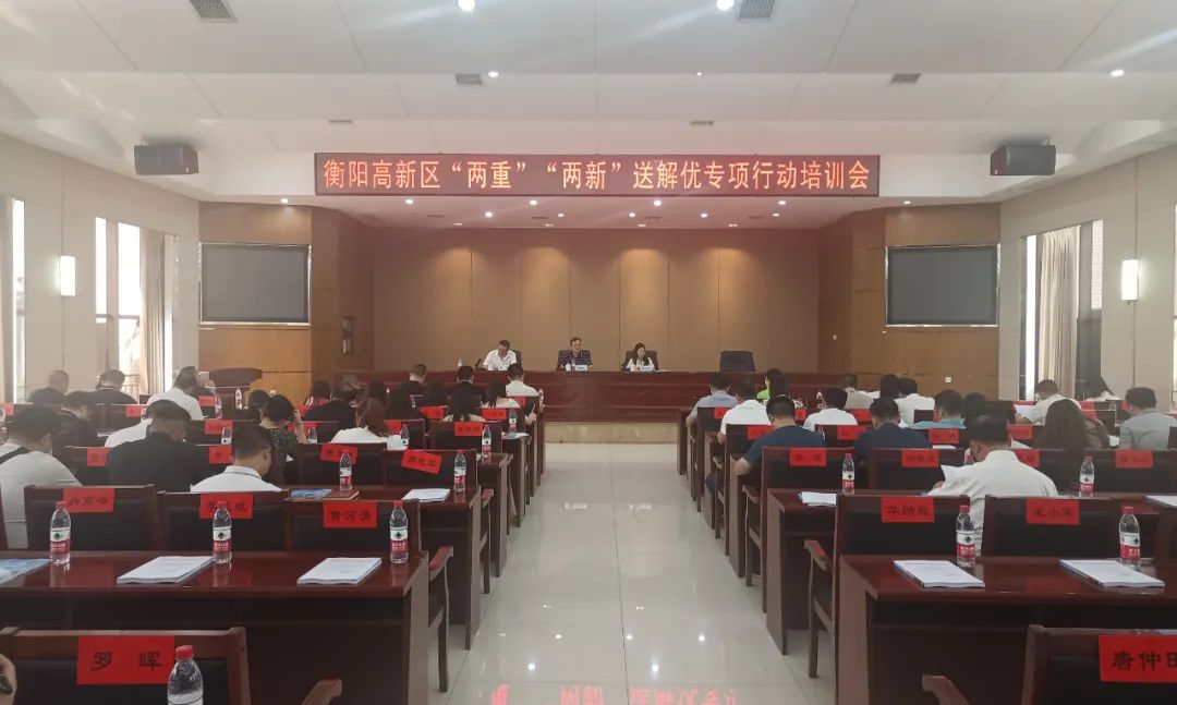 9月11日上午,衡陽(yáng)高新區(qū)組織召開“兩重”“兩新”送解優(yōu)專項(xiàng)行動(dòng)工作培訓(xùn)會(huì)?!皟芍亍薄皟尚隆焙怅?yáng)高新區(qū)黨工委分管領(lǐng)導(dǎo)、推進(jìn)機(jī)制辦公室、4個(gè)專項(xiàng)行動(dòng)工作組、工作專班組長(zhǎng)及各成員單位聯(lián)絡(luò)員參訓(xùn)。