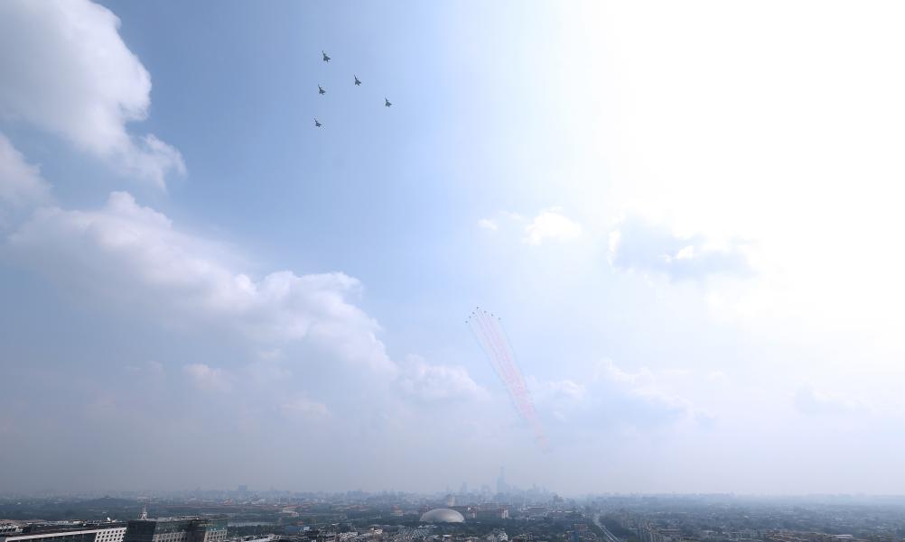 這是空中梯隊接受檢閱。新華社記者 孟永民 攝