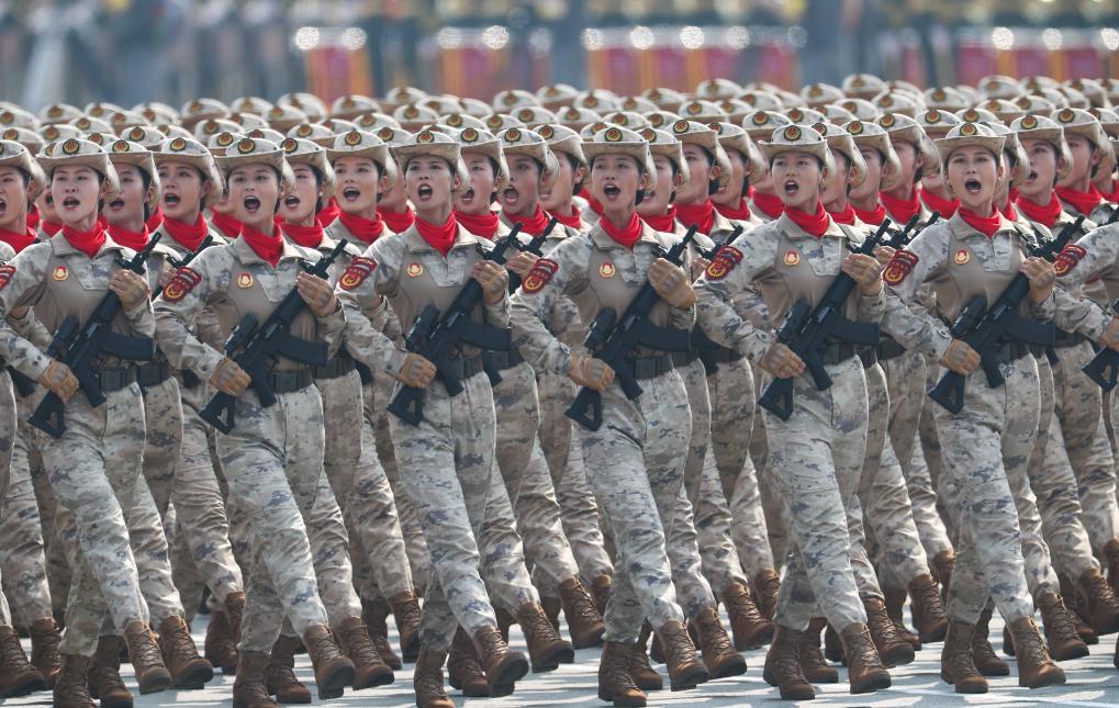 這是民兵方隊接受檢閱。新華社記者 毛思倩 攝