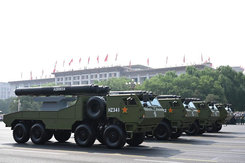 9月3日,紀念中國人民抗日戰(zhàn)爭暨世界反法西斯戰(zhàn)爭勝利80周年大會在北京隆重舉行。這是水下兵器方隊接受檢閱。新華社記者 楊冠宇 攝