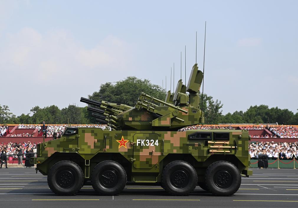 9月3日,紀(jì)念中國(guó)人民抗日戰(zhàn)爭(zhēng)暨世界反法西斯戰(zhàn)爭(zhēng)勝利80周年大會(huì)在北京隆重舉行。這是反無人機(jī)方隊(duì)接受檢閱。新華社記者 張鋮 攝