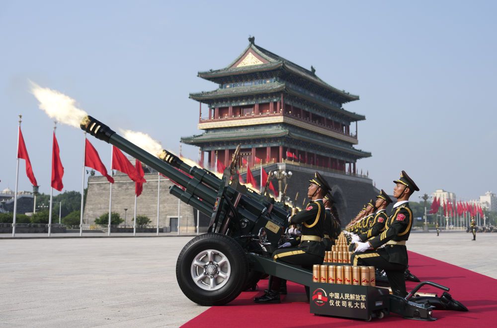 2025年9月3日,紀(jì)念中國人民抗日戰(zhàn)爭暨世界反法西斯戰(zhàn)爭勝利80周年大會在北京隆重舉行。這是禮炮在天安門廣場鳴響。新華社記者 牟宇 攝
