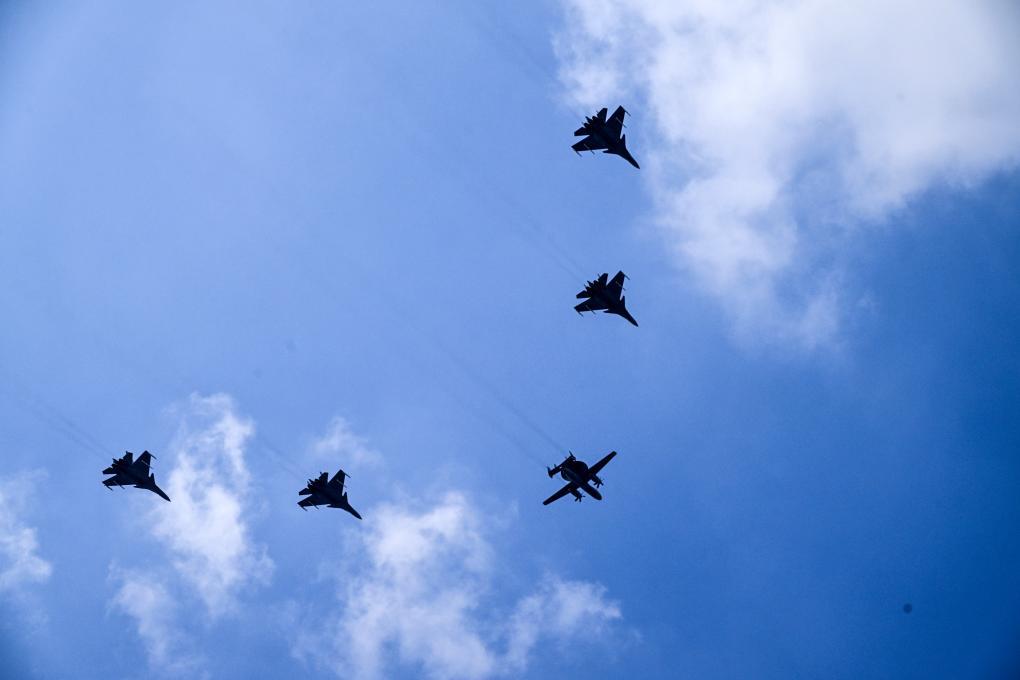 9月3日,紀念中國人民抗日戰(zhàn)爭暨世界反法西斯戰(zhàn)爭勝利80周年大會在北京隆重舉行。這是艦載機梯隊接受檢閱。新華社記者 鄭煥松 攝
