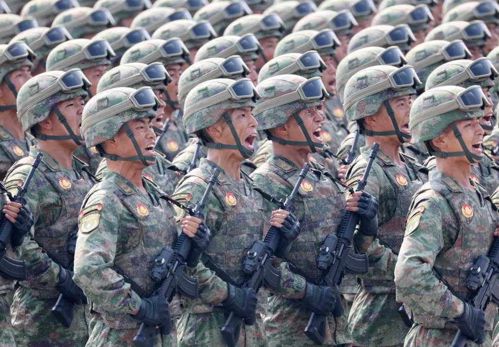 9月3日,紀(jì)念中國(guó)人民抗日戰(zhàn)爭(zhēng)暨世界反法西斯戰(zhàn)爭(zhēng)勝利80周年大會(huì)在北京隆重舉行。這是信息支援部隊(duì)方隊(duì)接受檢閱。新華社記者 張鋮 攝