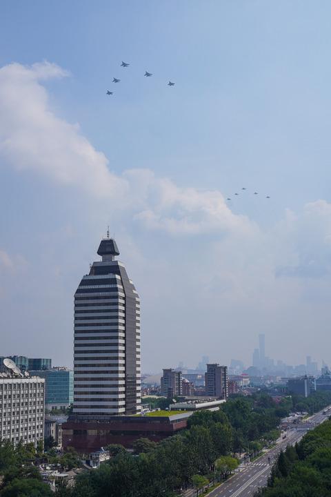 9月3日,紀(jì)念中國人民抗日戰(zhàn)爭暨世界反法西斯戰(zhàn)爭勝利80周年大會在北京隆重舉行。這是市民在拍攝空中梯隊。新華社記者 陳浩明 攝