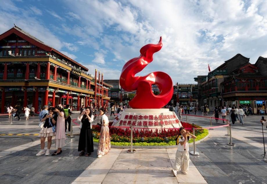圍繞“銘記歷史、緬懷先烈、珍愛和平、開創(chuàng)未來(lái)”主題,北京市綜合運(yùn)用國(guó)旗紅旗、立體花壇、宣傳畫面、夜景照明等形式進(jìn)行景觀布置工作,以莊嚴(yán)隆重、恢宏大氣的氛圍紀(jì)念中國(guó)人民抗日戰(zhàn)爭(zhēng)暨世界反法西斯戰(zhàn)爭(zhēng)勝利80周年。